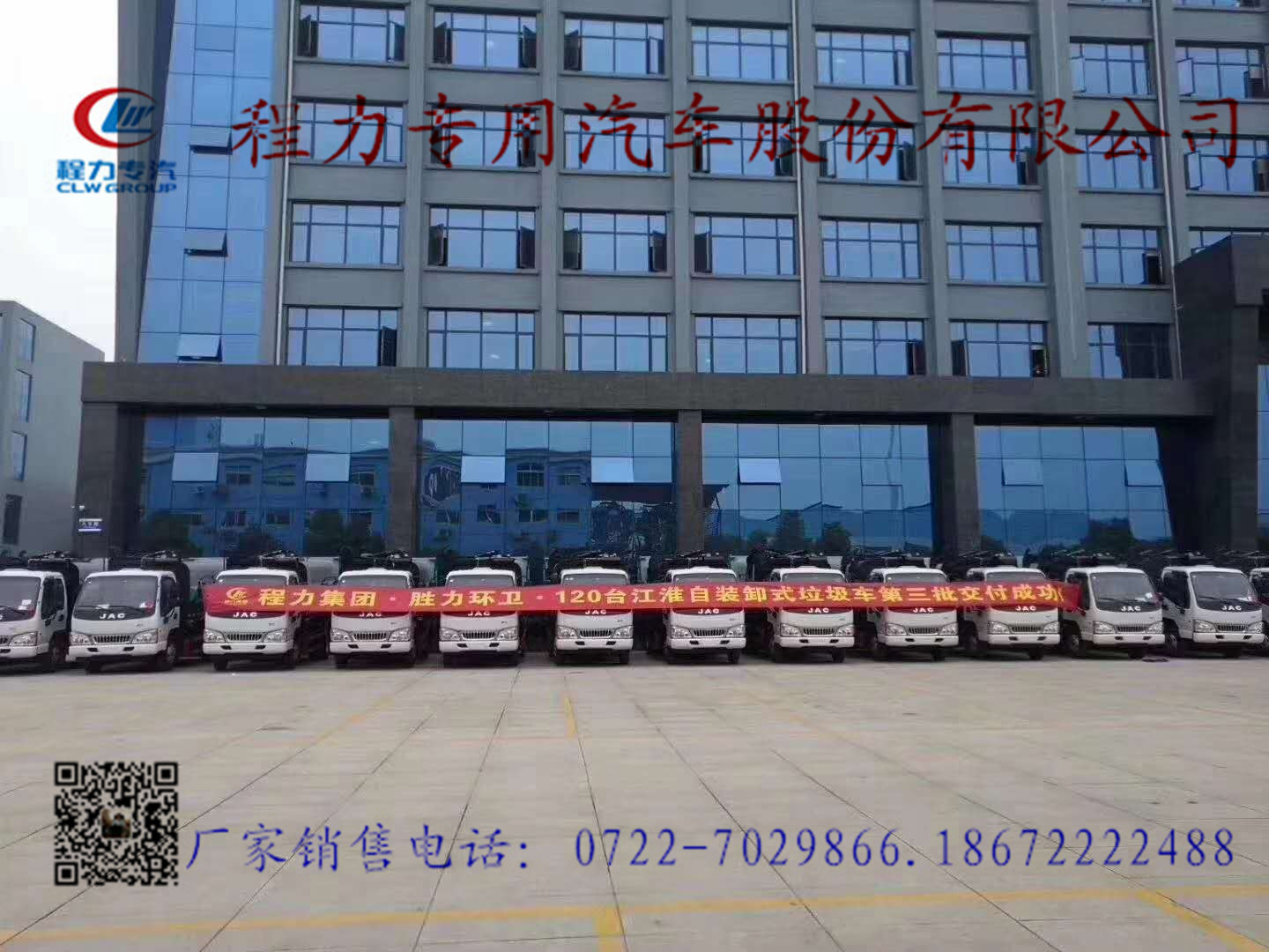 湖北程力集團江淮側(cè)裝壓縮垃圾車(自裝卸式垃圾車)批量發(fā)車圖片
