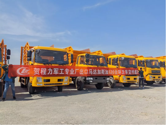 湖北程力汽車120輛擺臂式垃圾車出口馬達加斯加,為保護綠色地球打贏藍天保衛戰貢獻中國力量
