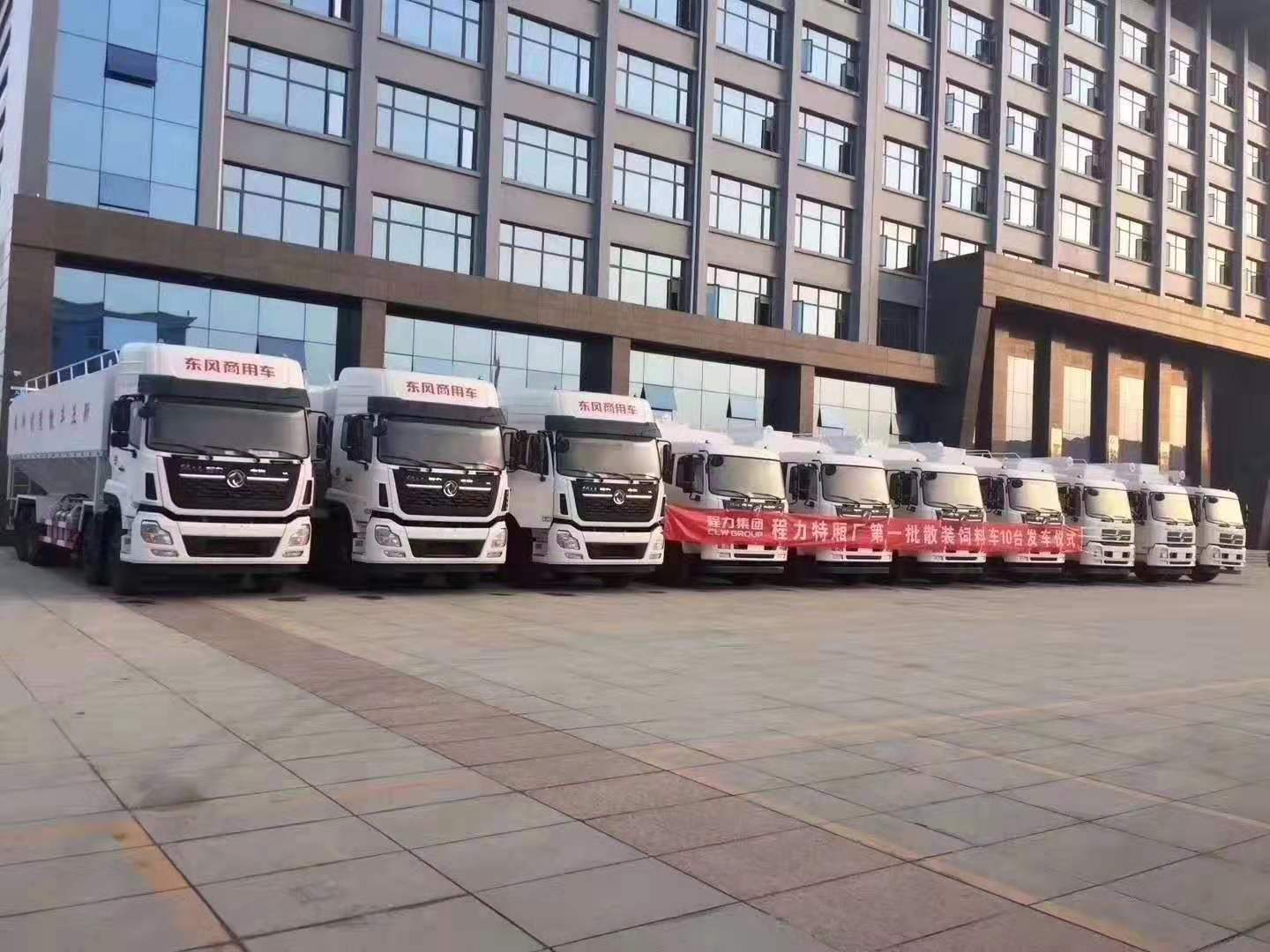在此期間湖南新五豐股份有限公司訂購湖北程力散裝飼料車也批量發車,氣勢磅礴。下面是湖北程力散裝飼料車發車圖片: