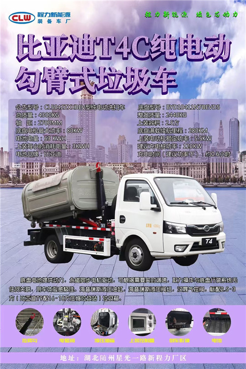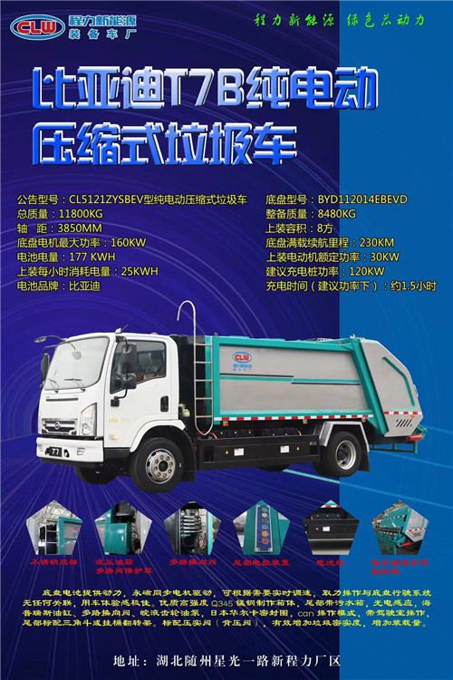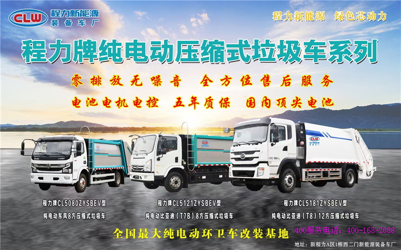 程力牌純電動壓縮垃圾車系列,程力牌新能源環衛垃圾車餐廚垃圾車,程力新能源勾臂垃圾車