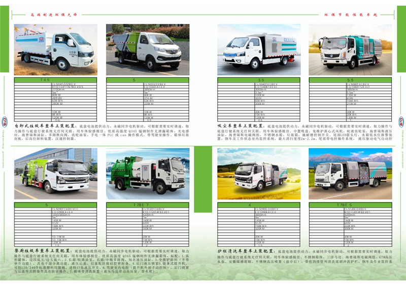 截止到2021年5月,公司目前已開發出純電動灑水車、洗掃車、壓縮垃圾車、吸塵車、抑塵車、勾臂式垃圾車、密閉式垃圾車、路面養護車、餐廚垃圾車、等60多個自主創新新能源純電動汽車系列產品。