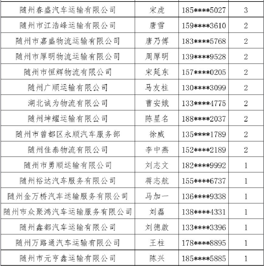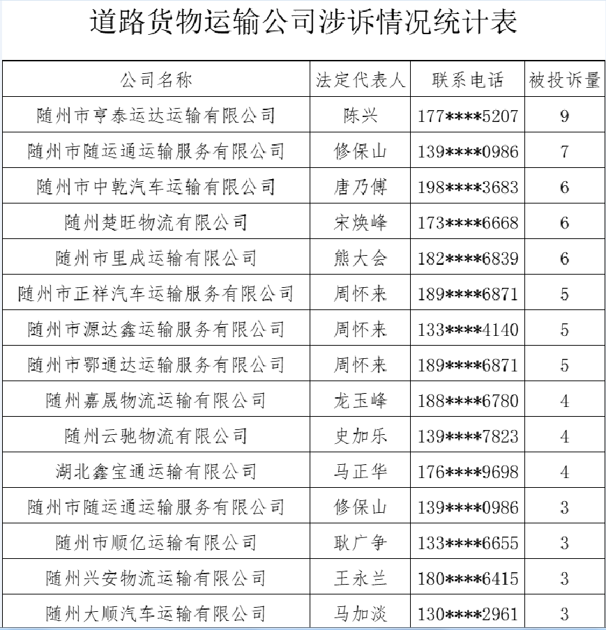 為了進一步營造公平、公正、有序的專汽市場生產經營環境,規范道路運輸市場經營秩序,切實維護消費者合法權益,曾都區專汽整頓專班經對2023年1-7月份專汽行業道路貨物運輸公司掛靠涉訴情況進行梳理,現按相關要求通報如下:
