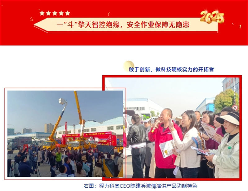 “科技是第一生產力,創新則為企業發展壯大的根基” ,在湖北程力汽車集團,發展新質生產力新興產業蔚然成風、方興未艾;青春程力每天迸發出蓬勃的內生動力,各生產經營單位爭先恐后搞研發強創新,并取得顯著成效。       4月1日上午,春光明媚暖陽和煦,程力科奧高空作業車專業廠在集團專用汽車工業園,舉行了4.5千伏特高壓帶電高空作業車新產品戶外現場培訓及促銷推薦會,這一爆款產品的上市,深受銷售經理喜愛和用戶追捧,現場數百人參加了盛會。