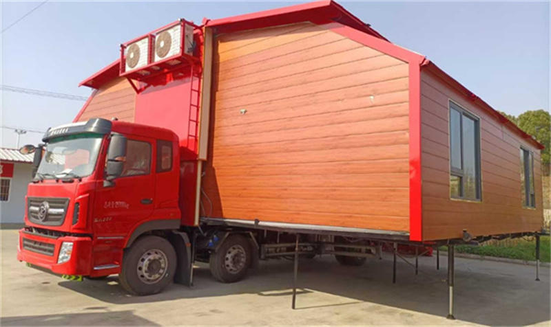 湖北程力9.6米移動宴席車可以擺放12-16桌,展開面積93平方,8.4×11.2米,一鍵遙控全液壓伸展,百變金剛。