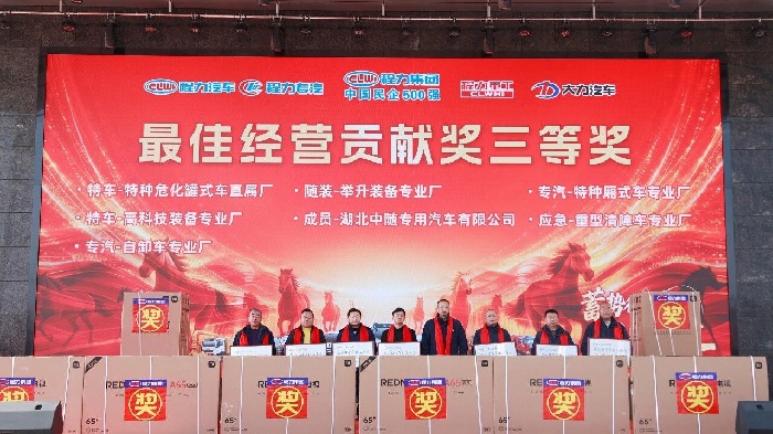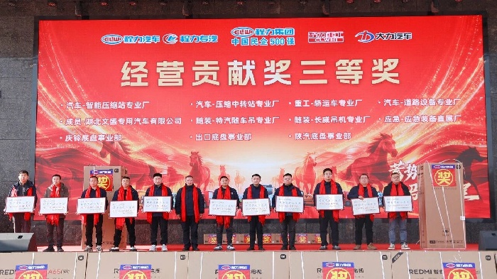 董事局主席程道國先生作總結講話,程主席回顧了程力發展征程,寄語全體同仁乘勢而上、策馬揚鞭,以更昂揚斗志深耕主業、開拓創新,共筑程力發展新高度。講話期間,二等獎、一等獎抽獎相繼揭曉,米家滾筒洗衣機等大獎花落名家,將氛圍推向頂點。 歲序更新,華章再啟,展望2026年,我們程力人初心如磐,奮楫篤行;馬躍新程,未來可期。本次大會既是總結表彰的榮耀盛典,更是啟航新局的動員令。全體程力人將以榜樣為力量,以戰略為指引,凝心聚力、勇毅前行,以實干書寫2026新篇章,共赴程力集團更輝煌的未來! 延展鏈接:2025年捷報頻傳碩果累累! 程力汽車集團2025年專汽單項產值首次突破100億元大關,出口創匯1億美金,上繳稅收超過一億元,在中國民企500強排名第320位,綜合實力顯著增強! 同時,程力汽車集團旗下子公司程力專用汽車股份有限公司“程力威”商標品牌價值,被湖北省政府、省發改委、省經信廳認定全國首家專汽品牌價值達12.38億元;“集團還同時擁有“大力”中國馳名商標和“程力”湖北省優勢商標等知識產權無形資產,知名品牌覆蓋了汽車整車、底盤、新能源車、汽車零部件等全鏈條關聯產業。 |