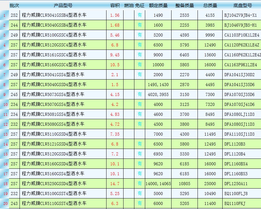 國四灑水車公告有哪些型號,