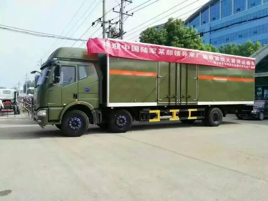 導讀:程力油化分公司危化品廂式車廠順利交付了首批9.6米火箭彈運輸車輛,過硬的品質(zhì)贏得了中國人民解放軍陸軍某部首長和隨行領導的一致認可,本次訂單從前期商務談判,…
