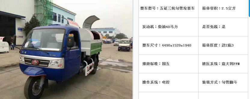 五征三輪勾臂垃圾車(上牌農用牌照)