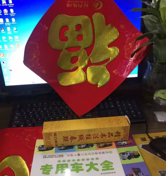 嗯嗯,這種植絨鎏金的高端對聯比我個子還高出一點點。 在精美禮品中,特別是被譽為專用汽車領域的葵花寶典《專汽大全》的出版發行,為培育及推廣隨州專汽區域品牌向全國性大品牌將起到積極的作用。程力公司主要領導及公司黨委還做出決定,把這份精美的禮物不僅作為新年賀禮送給員工及親人,還免費贈送給全市的幼兒園和兒童福利院,讓小朋友們從小就熱愛專汽、熱愛家鄉,長大后做對社會對國家有用的棟梁之才。