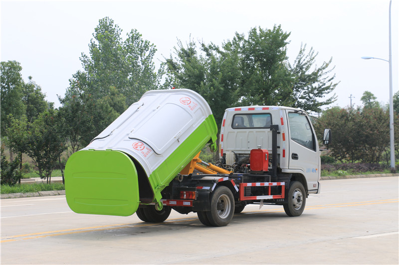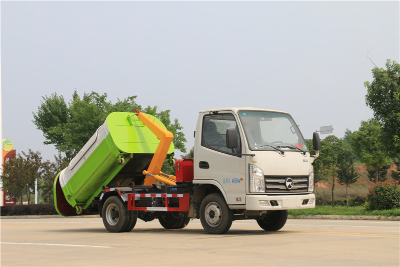 凱馬3方勾臂垃圾車上裝配置:強度合金鋼一體式主勾臂,加強型副梁,鑄鋼尾托輪,手電一體液壓操控裝置,上裝提升能力2500KG,液壓完成上箱+下箱+鎖緊+自卸等作業,實現一車配多箱的循環轉運。