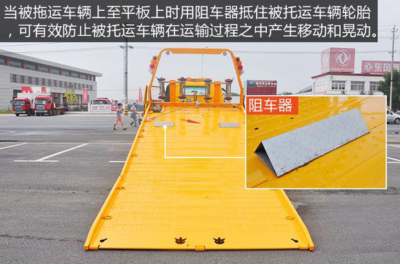 當被拖運車輛上至平板上時用阻車器抵住被托運車輛輪胎,可有效防止被托運車輛在運輸過程之中產生移動和晃動,設計合理使用方便,可以很好的保護被托運車輛。滑動限位,固定更精確,操作更簡便。