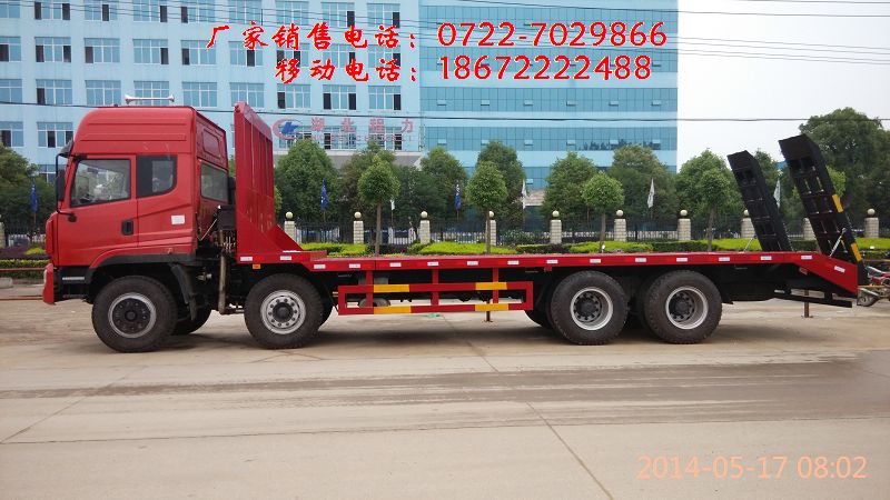 程力平板運輸車又名為工程機械運輸車、平板車、拖車,主要用于運輸一些像挖掘機,裝載機,收割機一樣的不可拆卸物體。平板運輸車是生活中常見的大型載重貨車,這種車一般被廣泛用于工廠,工地等大型生產(chǎn)或工程所在地,平板運輸車的承重能力強的特點使其在經(jīng)濟發(fā)展過程中起了重要作用。其品種有東風(fēng)金霸平板運輸車,東風(fēng)多利卡平板運輸車,東風(fēng)145平板運輸車,東風(fēng)153 平板運輸車,東風(fēng)前四后四平板運輸車,東風(fēng)前四后八平板運輸車,楚風(fēng)單橋平板運輸車,解放,福田,江淮等各種規(guī)格平板運輸車,另外還有半掛平板運輸車。所裝貨物在3噸到30噸,適用于工程機械和一些不可拆卸貨物的長途運輸。