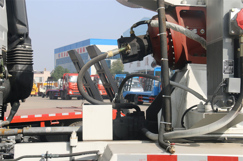混凝土攪拌車工作原理是:通過取力裝置將汽車底盤的動力取出,并驅動液壓系統的變量泵,把機械能轉化為液壓能傳給定量馬達,馬達再驅動減速機,由減速機驅動攪拌裝置,對混凝土進行攪拌。