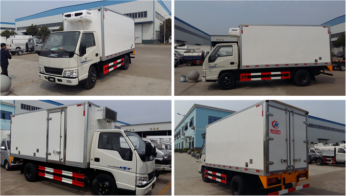 3.上裝配置:冷藏廂內部有效尺寸:長4.15米×寬1.75米×高1.75米,廂體蒙皮采用內外玻璃鋼,隨客戶選擇內置槽鋼焊接骨架或者玻璃纖維超輕高強度骨架,填充8cm聚氨酯保溫層,不銹鋼包角,不銹鋼門框,不銹鋼門鎖件,配后雙開門,選裝側門,防滑花紋鋁底板,-5或者-18度制冷機組可選。可以改裝成藥品冷藏車或者安裝導軌,肉鉤,通風槽等內部設施改裝成肉掛車。