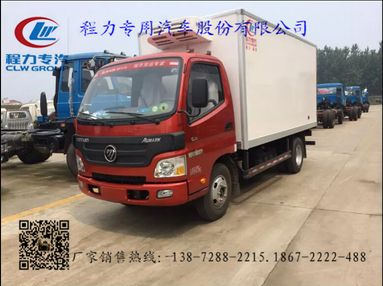 2.上裝配置:冷藏箱體內部有效尺寸:長5.04米×寬2米×高2米,廂體蒙皮采用內外玻璃鋼,隨客戶選擇內置槽鋼焊接骨架或者玻璃纖維超輕高強度骨架,填充8cm聚氨酯保溫層,不銹鋼包角,不銹鋼門框,不銹鋼門鎖件,防滑花紋鋁底板,配后雙開門,車廂右側可以加開側門,安裝-5度或者-18度制冷機組可選,選裝T型材通風槽,導軌,肉鉤等輔助設施