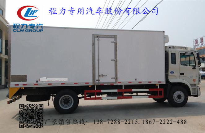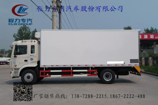 2.上裝配置:冷藏廂體內部有效尺寸:長6.23米,6.83米,7.6米(三種)×寬2.35米×高2.43米,廂體蒙皮采用內外玻璃鋼,隨客戶選擇內置槽鋼焊接骨架或者玻璃纖維超輕高強度骨架,