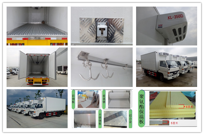 102后橋,ABS,駕駛室自帶方向助力、中控鎖,采用知名品牌制冷機組,保鮮溫度可達零下5度,冷凍