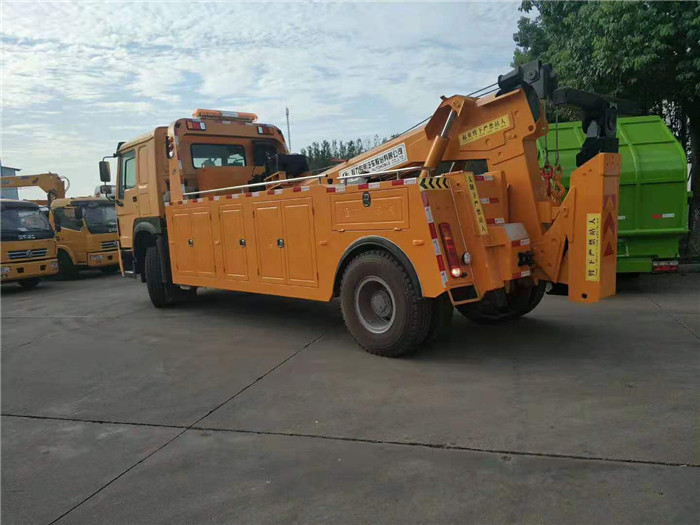 12噸上裝16噸后托臂,連體式上裝,二節六邊形吊臂,三節托臂,分體式車廂,雙側聯動操作裝置,2個8噸卷揚,45米鋼絲繩,配四套鋼叉,一套拖叉套,一套鋼板吊耳拖叉,一套抱胎裝置,輔助燈一套,輔助氣管總成一套。 整車出具:底盤合格證、整車合格證、全國統一機動車發票、隨車工具、車輛質保手冊、全國服務站點目錄等。