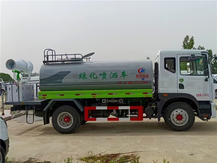 東風D9綠化噴灑車(12-14方)程力威牌東風多利卡D9園林綠化噴灑車底盤配置:東風多利卡排半帶翻轉駕駛室,康明斯195馬力和230馬力或玉柴200馬力和165馬力國六柴油發動機,6檔變速箱或者法士特8擋箱,10.00R20鋼絲胎,原廠空調,電動窗,中控鎖,行駛記錄儀。 東風D9綠化噴灑車(12-14方)程力威牌東風多利卡D9園林綠化噴灑車罐體采用4mm厚熱軋板制作,兩封頭采用5mm厚的武鋼熱軋板制作,內置防波板,以避免在滿載狀態下因液體沖撞而造成剎車效果不佳、轉向不靈等。 威龍60/90灑水泵,配前前沖、后灑、側噴、后工作平臺、水炮、灑水管路采用無縫鋼管,罐體前間有量水管,安裝濾網,帶消防接口。罐體采用機器壓板一次性成型技術,采用先進旋邊機,罐體包罐機工藝保證了罐體制作的精度和美觀。全國獨有烤漆工藝,防腐除銹,多層底漆、面漆噴涂。功能齊全,灌溉、噴灑、道路養護,噴霧降塵、高炮噴射等,采用水泵,合理設計水路管道,氣控取力器,作業能力強,提高了車輛的使用效率。 噴灑性能:標準化東風多利卡D9多功能園林綠化噴灑車,罐體側后方帶高位花灑,園林綠化澆水更便捷,可加裝氣動裝置駕駛室操作更省時,更安全便捷。灑水裝置:前沖,后灑,側噴,后工作平臺。射程寬度:≥15米;高壓水炮:可360度旋轉,可調成:直沖狀、大雨、中雨、小雨、毛毛雨。射程:≥30米;帶自吸自排裝置(可將池塘的水直接吸入罐體內,垂直吸程7米),配置國標65型消防接口,可通過消防栓加水。后工作平臺,可以加裝30-100米霧炮。 湖北程力東風D9灑水車(12-14方綠化噴灑車)程力威牌CLW5182GPSD6型CLW5180GPSD6型CLW5183GPSD6型綠化噴灑車圖片價格: