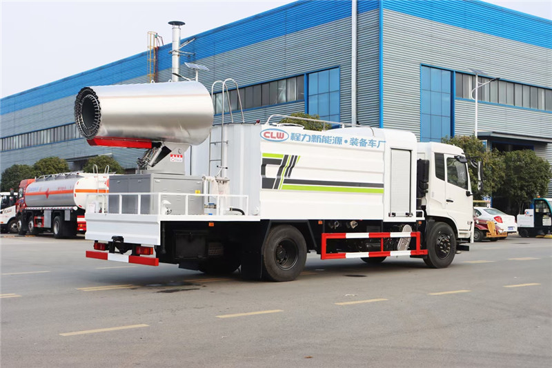 湖北程力國六東風天錦60-100米抑塵車(方罐)程力威牌CLW5181TDYD6型多功能抑塵車廠家配置: 湖北程力國六東風天錦抑塵車底盤配置:底盤采用東風天錦國六底盤,公告型號:CLW5181TDYD6,康明斯6缸ISB210馬力發動機,4700軸距,275真空胎,6檔變速箱,原裝空調,ABS。 湖北程力國六東風天錦抑塵車上裝配置:罐體容積11.3立方,罐體為方形罐,罐體內部做防腐,罐體鋼板采用Q235碳鋼鋼材,整車具備灑水車的一切功能(前沖、后灑、側噴、平臺高炮),氣動球閥控制灑水功能,水位報警器,標配億豐60/90水泵,自流閥及消防接頭各1個、水管2根。后平臺安裝一臺60米霧炮。 湖北程力國六東風天錦抑塵車霧炮參數:CLW-100型60米,副發電機組功率50(Kw),風機功率15(Kw),不銹鋼多級離心泵功率5.5(Kw)。100米無線遙控操作,霧化距離60米(靜風室內距離)實際射程:(霧化射程會受濕度、溫度、風速等各方面天氣因素的影響,另外天氣干燥地區一部分在空中被蒸發掉)。 | 湖北程力國六東風天錦60-100米抑塵車(方罐)程力威牌CLW5181TDYD6型多功能抑塵車圖片價格: