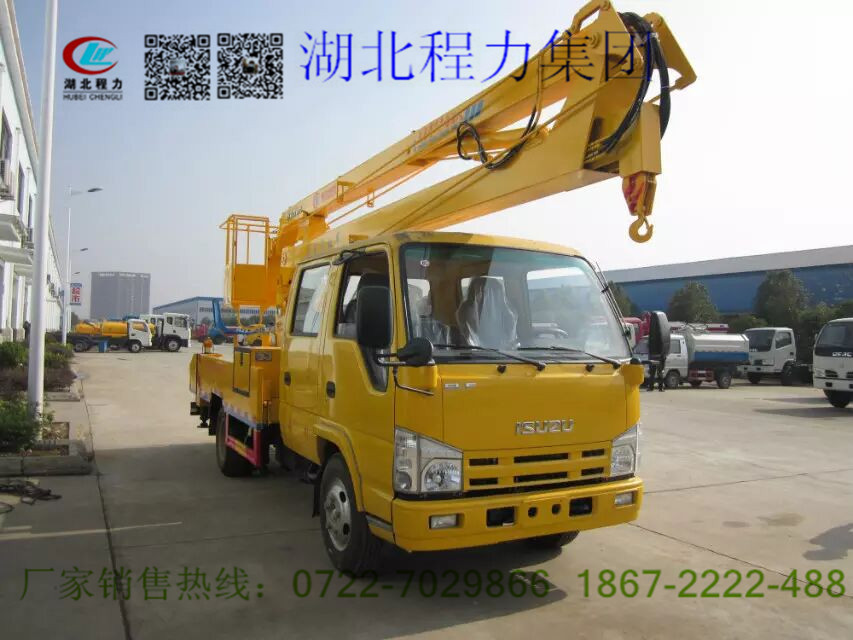 湖北程力高空作業車股份有限公司生產的高空作業車系列產品,釆用原裝底盤(日本技術)、帶空調、方向助力、平頭、雙排(或帶臥),可容納更多的作業人員。配置工作籃;帶電絕緣裝置,經受實戰檢驗,性能穏定可靠。主要用于電氣線路檢俢、高空作業清洗、樹木剪枝等高空作業使用。