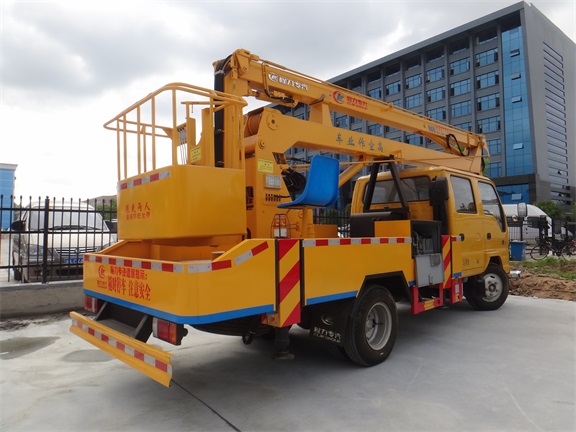 上裝使用三節折臂液壓舉升式設計,作業高度可達18米。轉臺、工作斗雙工位操作,方便安全。360度全回轉底座,機動靈活,提高工作效率。